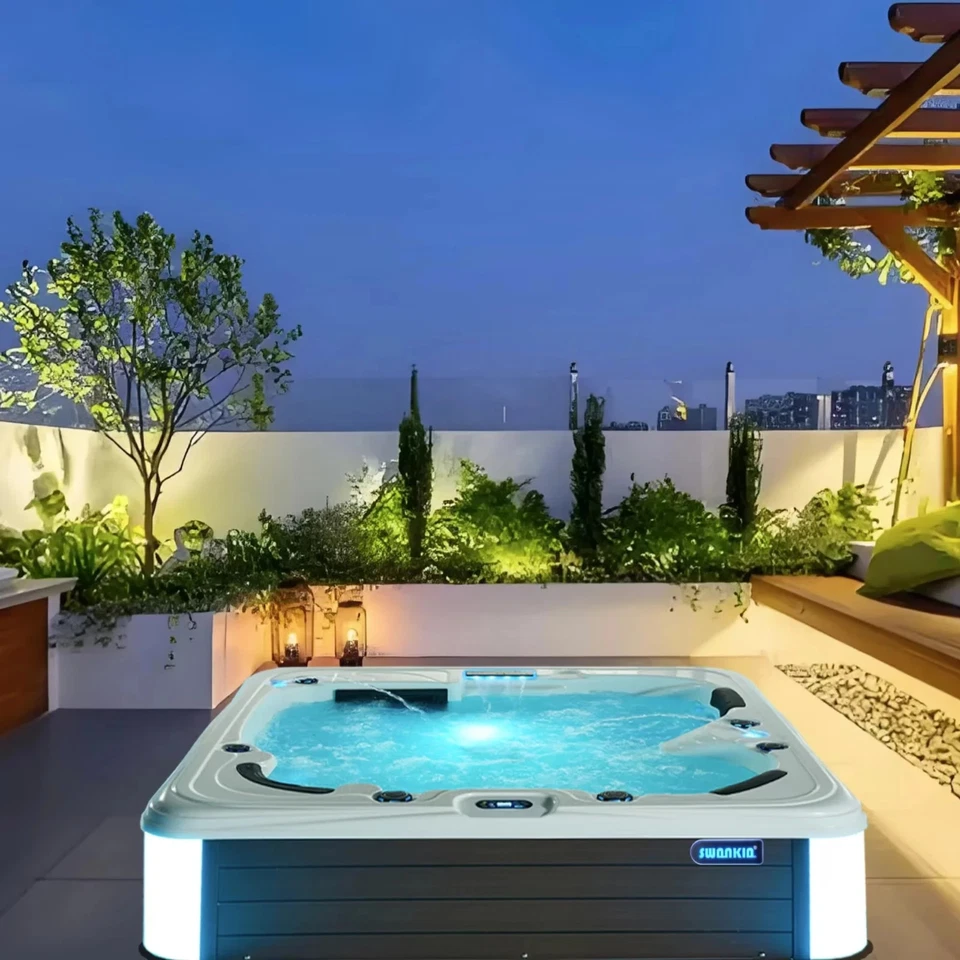 Setting up a five-person spa requires planning. Appropriate base support—like a reinforced concrete pad or deck rated for at least 2,500 pounds when filled—is essential. Electrical wiring must meet local codes; typically, a dedicated 220–240V circuit with a GFCI is required. Delivery logistics (e.g., gate clearance, crane access) and pathway access should also be checked to avoid hassles during installation.