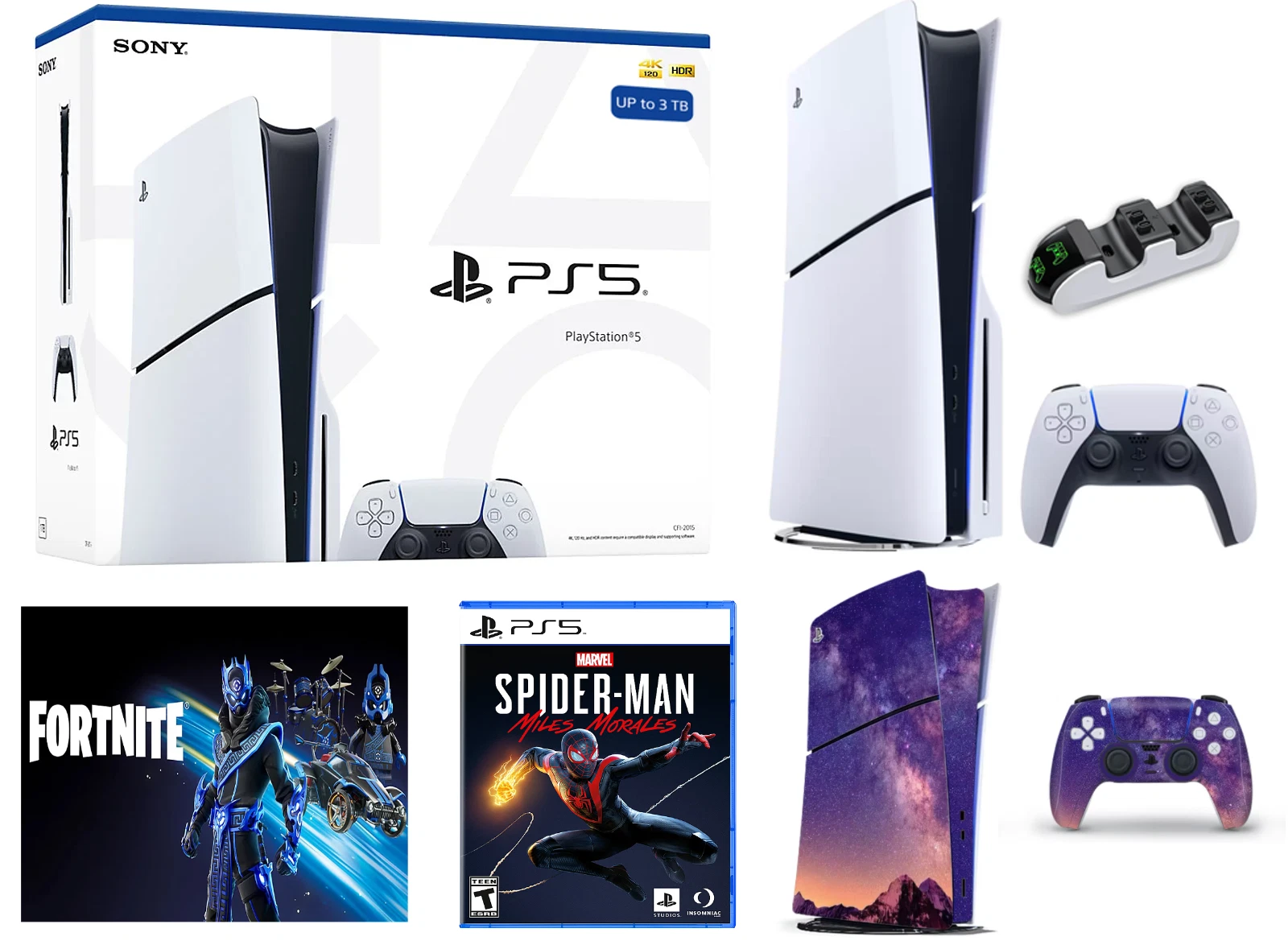 This holiday bundle typically includes the PlayStation 5 Disc Edition console, one DualSense wireless controller, all standard cables, and a voucher or physical copy of Marvel’s Spider-Man 2. Many retailers also offer variations of this bundle that include extra games, additional controllers, charging docks, or decorative skins. The “up to 3TB” element refers to either upgraded storage installed by the seller or additional drives provided in the package.